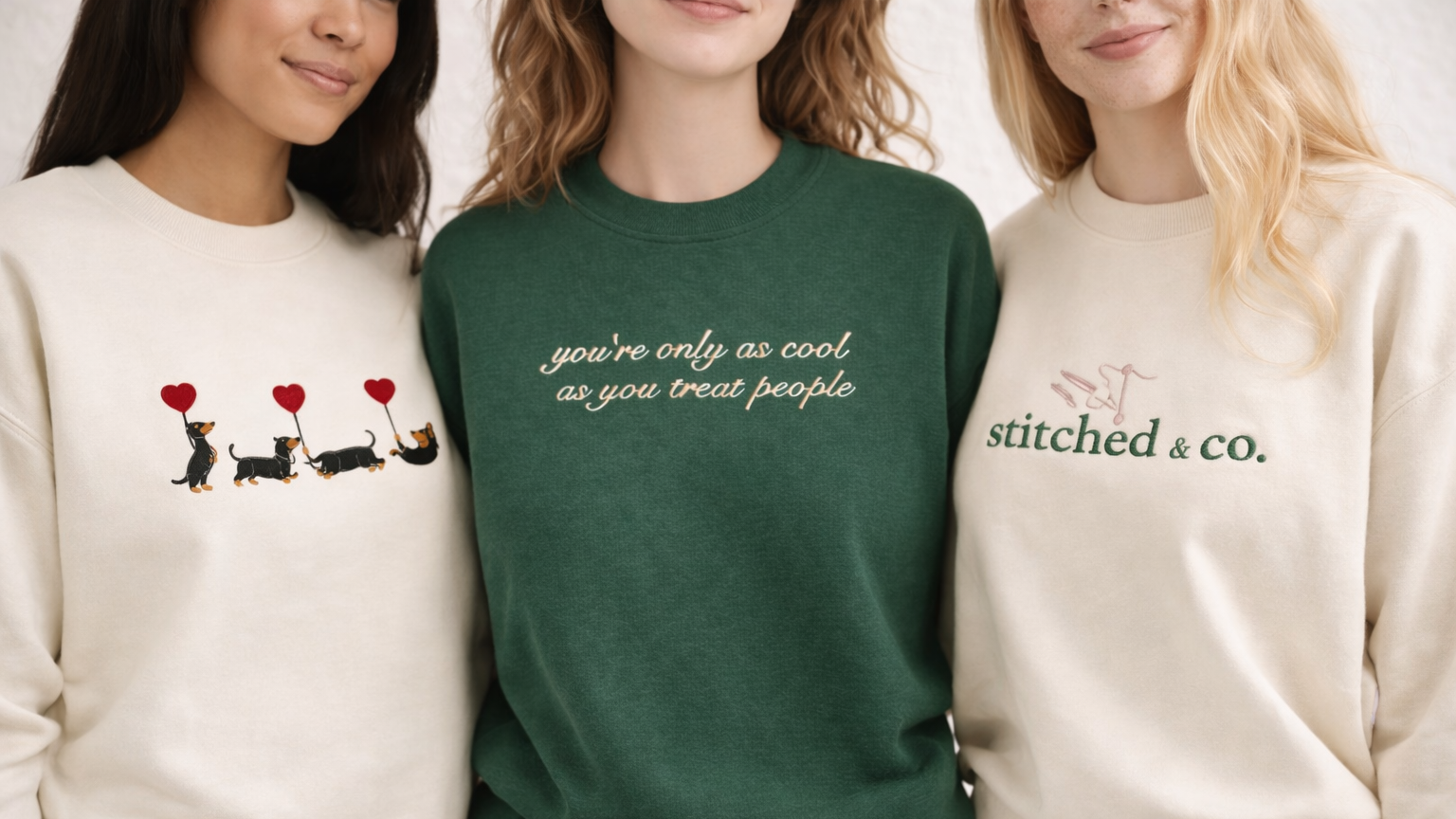 "dachshund with heart balloons" crewneck